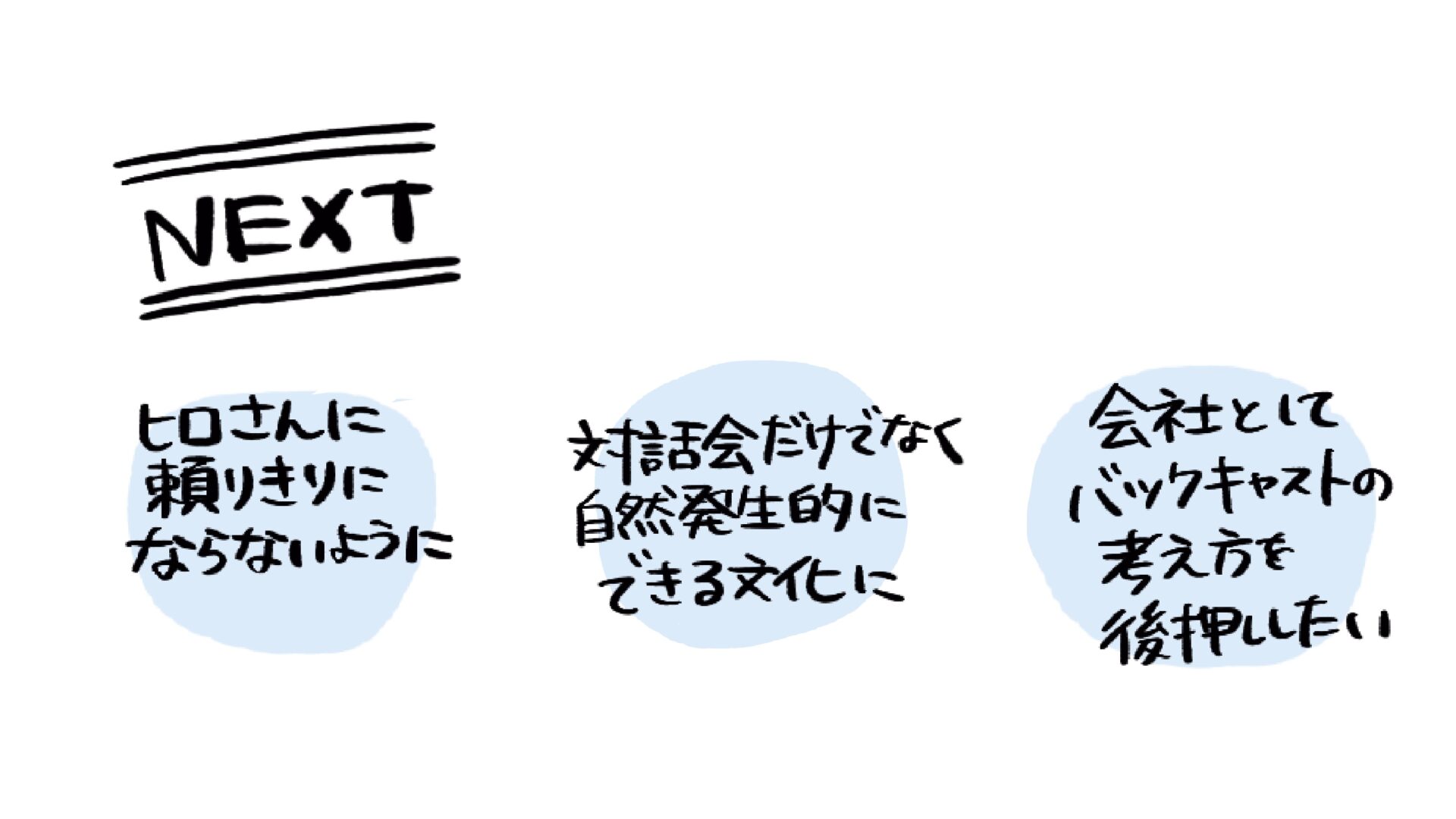 吉原さん:ヒロさんに頼らなくてもできるようにすることを目指したいです。号令やイベントがなくても、組織の中でそういった考え方ができるようになっていくこと、メンバーが自然とできるようになることが理想ですね。そして本当に必要な時に、ヒロさんに声をかけさせていただくかたちにできたらと考えています。