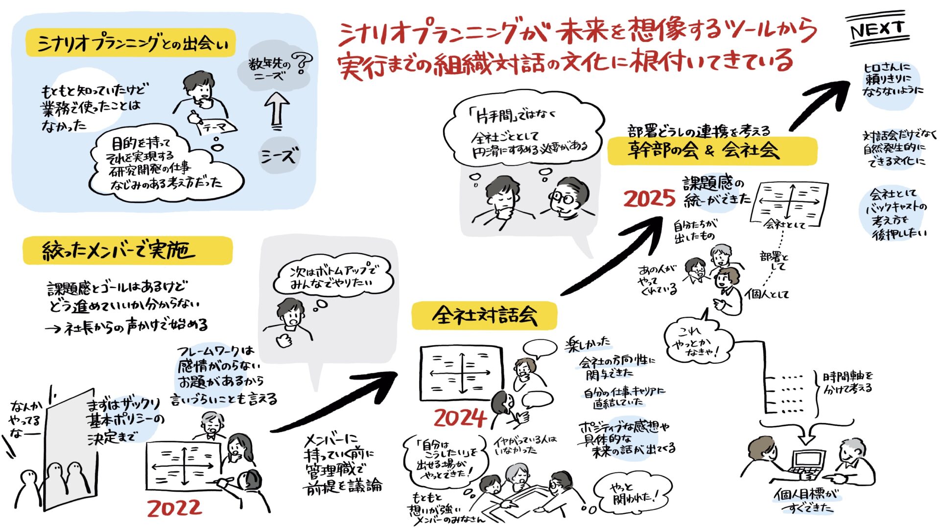 一部の管理職から全員参加へ。シナリオを「自分たちのもの」にするために